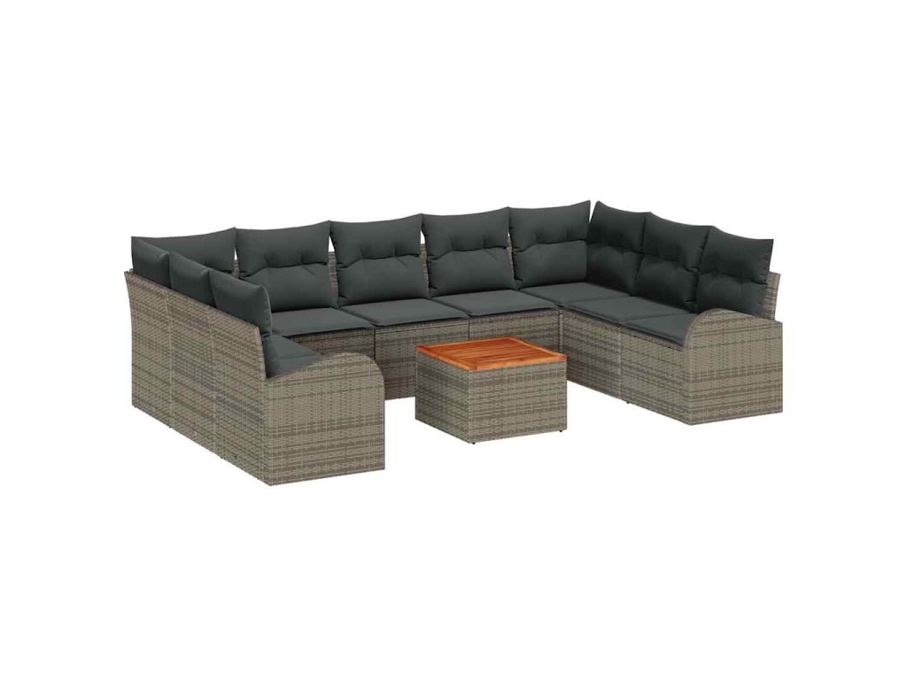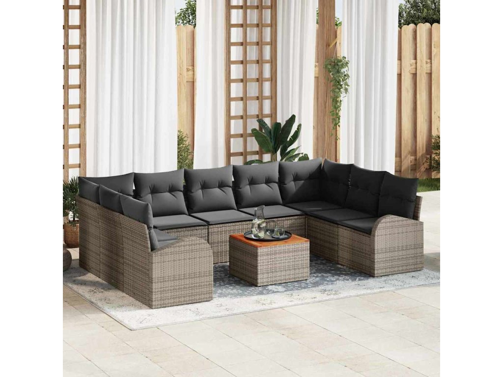 Tento sofistikovaný zahradní pohovkový set je moderním, modulárním mistrovským dílem navrženým pro venkovní relaxaci a společenskou interakci. Čisté linie a minimalistický vzhled setu přináší jednoduchost a funkčnost do zahrad a teras. Díky svému stylovému, tkanému povrchu z polyratanu nábytek nabízí elegantní atmosféru, která zkrášluje venkovní prostory, zatímco poskytuje pohodlné útočiště pro lenošení nebo zábavu.