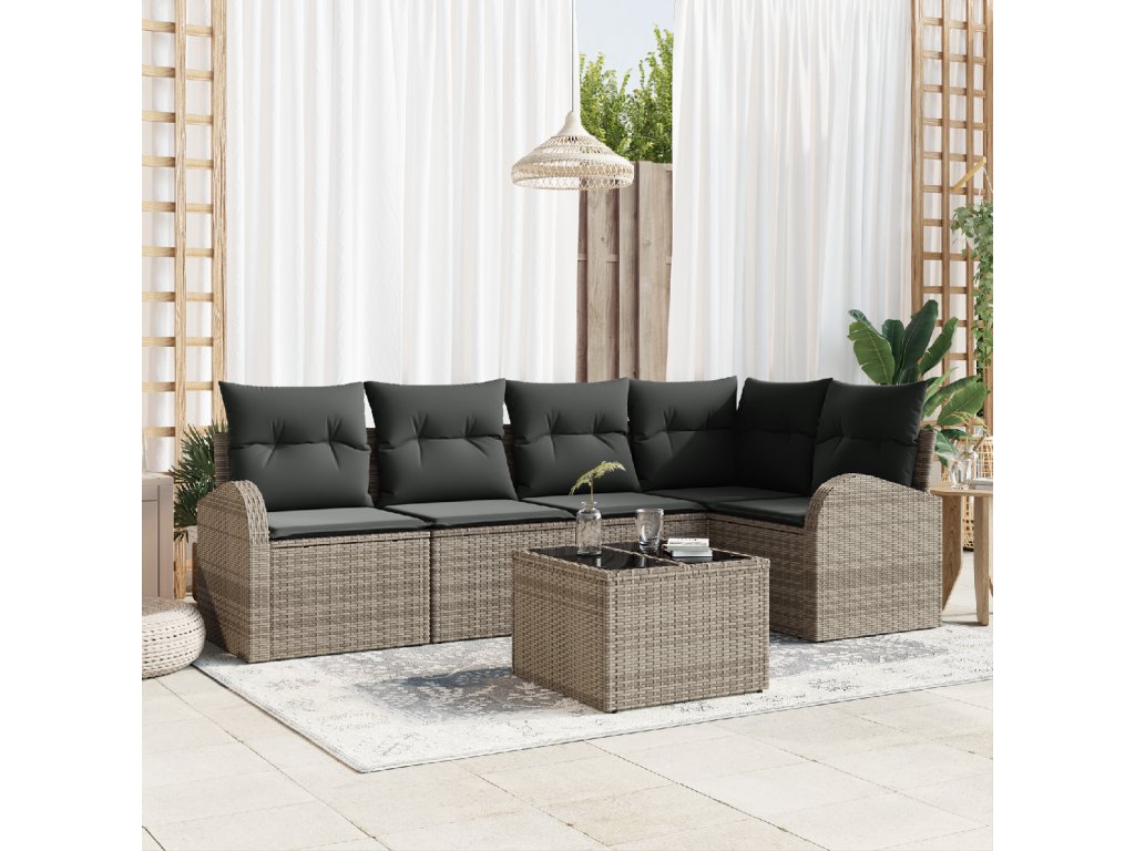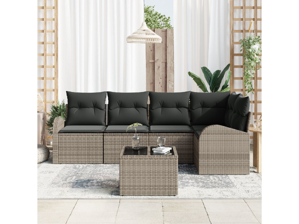 Sada zahradních pohovek s polštářem 6 pcs Šedá Poly ratan