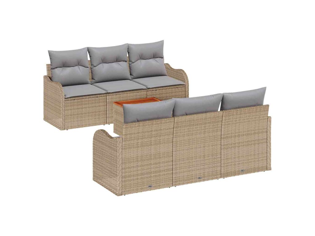 - Funkční komponenty: Obsahuje dvě centrální sedadla a čtyři arm sofy, z nichž každé je vybaveno úložištěm a voděodolnými taškami, ideálními pro uchovávání polštářů suchých a bezpečných. Zahradní stůl má vrchní desku z masivního akáciového dřeva, což zvyšuje praktičnost a eleganci.