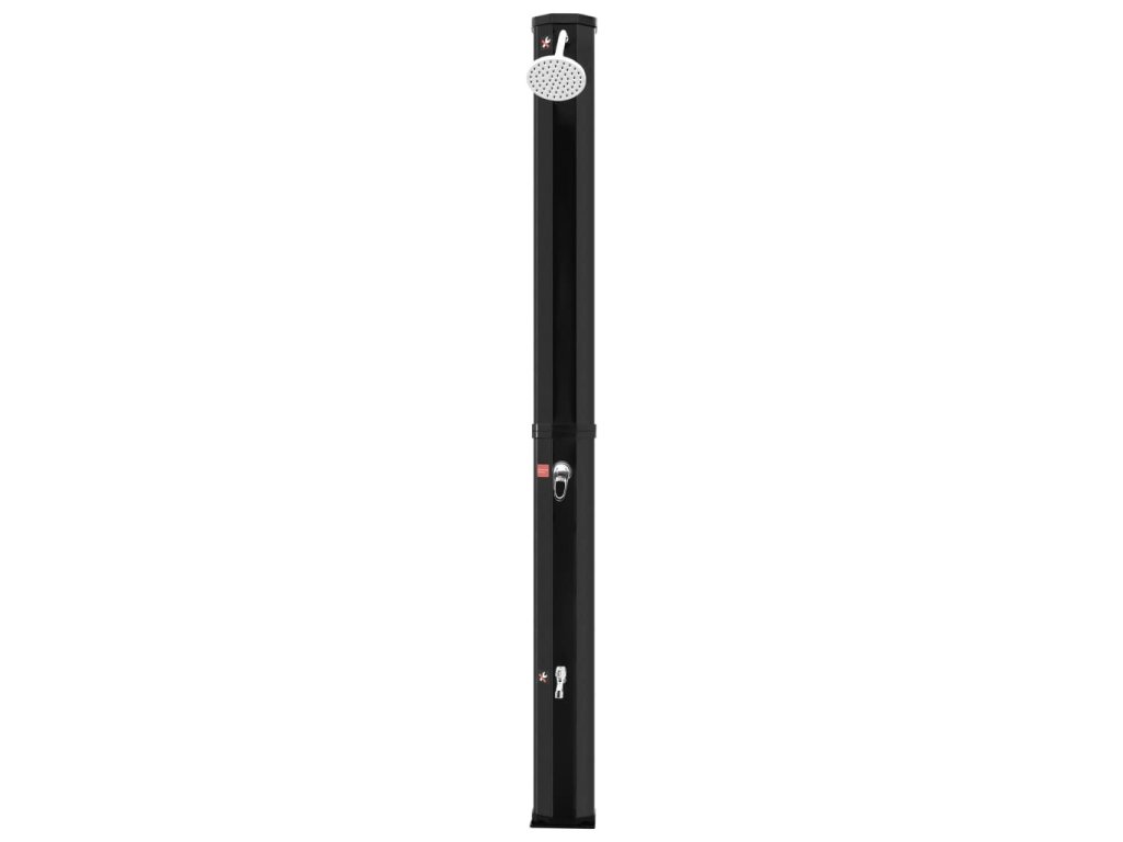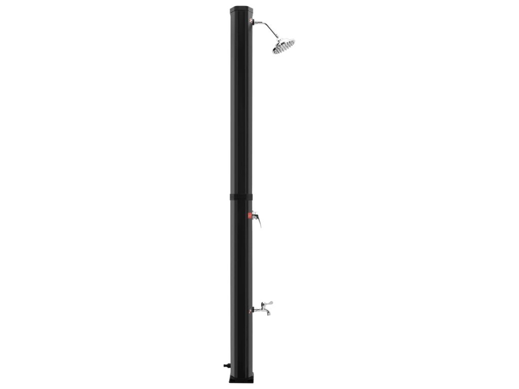 Solární energie, kterou absorbuje, ohřeje vodu uvnitř nádrže a nabídne vám perfektní sprchu! Vodu je možné ohřát až na 60 °C. Je vybavena nádrží na vodu o objemu 35 l. Součástí je také kohoutek s dalším praktickým využitím. Součástí balení jsou také šrouby pro pevné a stabilní upevnění sprchové základny na jakýkoli rovný pevný povrch. Tato solární sprcha s elegantním a exkluzivním vzhledem se hodí do vaší zahrady nebo k bazénu.