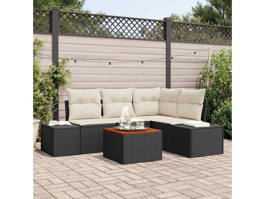 Prémiová materiálová skladba Mix odolného PE ratanu, práškově lakované oceli a masivního akáciového dřeva harmonicky spojuje odolnost s estetickým půvabem. Poly ratan byl vybrán pro svou schopnost odolávat UV paprskům a opotřebení, což zajišťuje dlouhověkost. Ocelové konstrukce poskytují robustní podporu, zatímco akáciové dřevěné povrchy dodávají kousek přírodní elegance.,Kompletní komponenty Obsahuje jedno centrální sedadlo, jedno rohové sedadlo, dvě pohovky a zahradní stůl, všechny vybavené voděodolnými taškami. Každý kus přispívá k všestrannosti sady, což umožňuje různé konfigurace vhodné pro různé velikosti shromáždění.,Designové prvky Modulární a nastavitelné nožičky zajišťují přizpůsobivost, což zaručuje stabilní umístění i na nerovných terénech. Jeho soudržný styl s čistými liniemi a minimálními ozdobami se shoduje s moderními designovými principy, takže se bezproblémově hodí k současnému venkovnímu dekoru.,Univerzální použití Perfektně se hodí na zahrady nebo terasy, kde jsou běžné venkovní shromáždění, rodinné relaxace nebo intimní skupinové večeře. Nevyčnívající sofistikovanost této sady zajišťuje, že doplní jakékoli prostředí, aniž by ho přehlušila.,Údržba a péče Chraňte sadu jejím zakrytím, když ji nepoužíváte. Tento jednoduchý, ale efektivní tip na údržbu prodlužuje její použitelnost a udržuje její živý vzhled v průběhu času, takže máte klid.- Barva: Černá a bílá