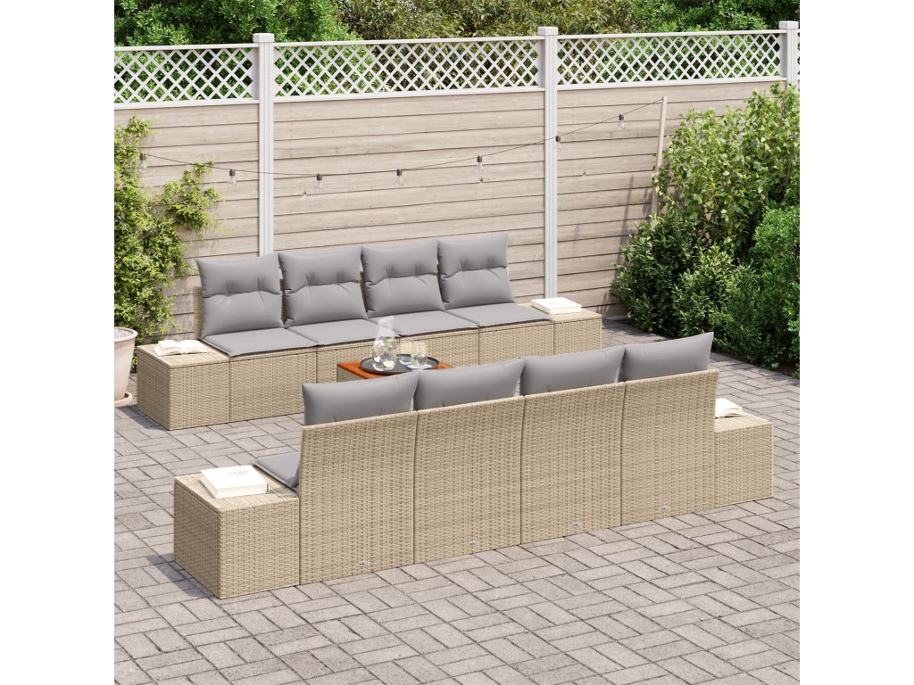 Sada zahradních pohovek s polštářem 9 pcs Béžová Poly ratan