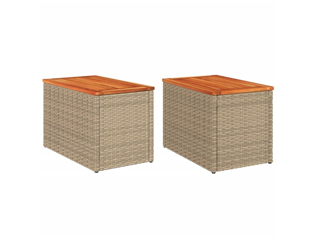 Zahradní stolky 2 ks béžové 55x34x37 cm polyratan masivní dřevo