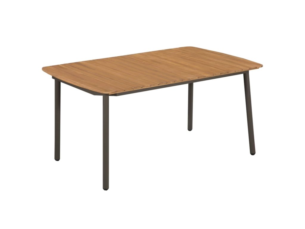 Stůl je vyroben z masivního akáciového dřeva s olejovou povrchovou úpravou a s laťkovým designem. Ocelový rám zajišťuje jeho pevnost a stabilitu a navíc mu propůjčuje industriální vzhled. Sestavení a údržba jídelního stolu je snadná.