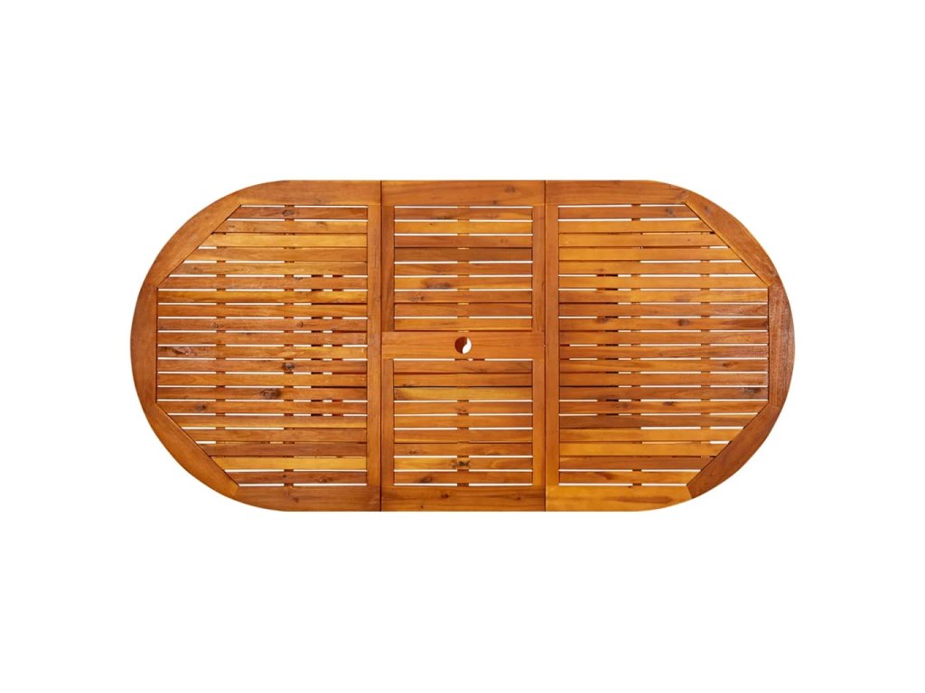 Tento jídelní stůl je vyroben z vysoce kvalitního akáciového dřeva, tropického tvrdého dřeva, které je odolné vůči povětrnostním vlivům a velmi trvanlivé. Díky olejem natřenému povrchu je snadné ho čistit vlhkým hadříkem. Stůl se dá složit, abyste ušetřili místo, když ho zrovna nepoužíváte.