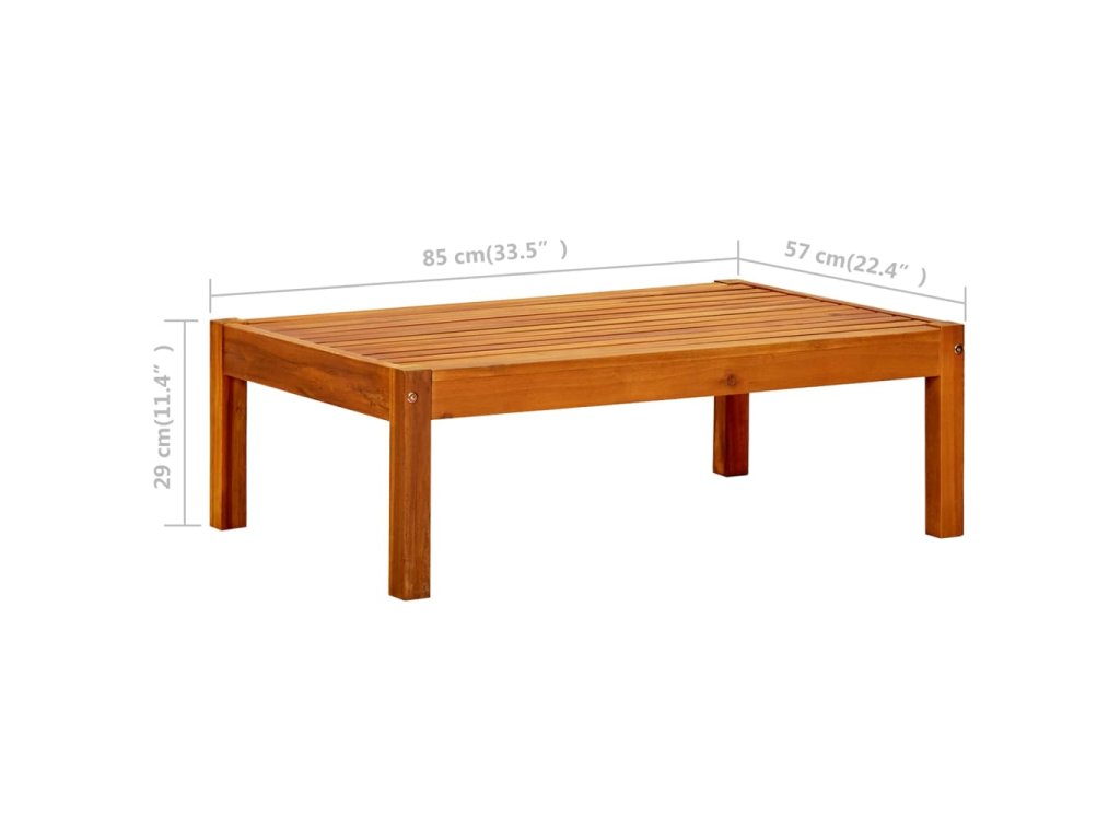 Tento konferenční stolek je vyroben z masivního akáciového dřeva, takže je stabilní a odolný a vhodný na terasu, zahradu, dvorek nebo do jakýchkoli venkovních i vnitřních prostor. Olejem ošetřený povrch se snadno čistí vlhkým hadříkem. Pevná deska stolu nabízí prostor pro odložení občerstvení, košíků s ovocem, dekorativních předmětů a různých dalších nezbytností.