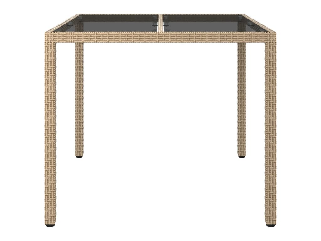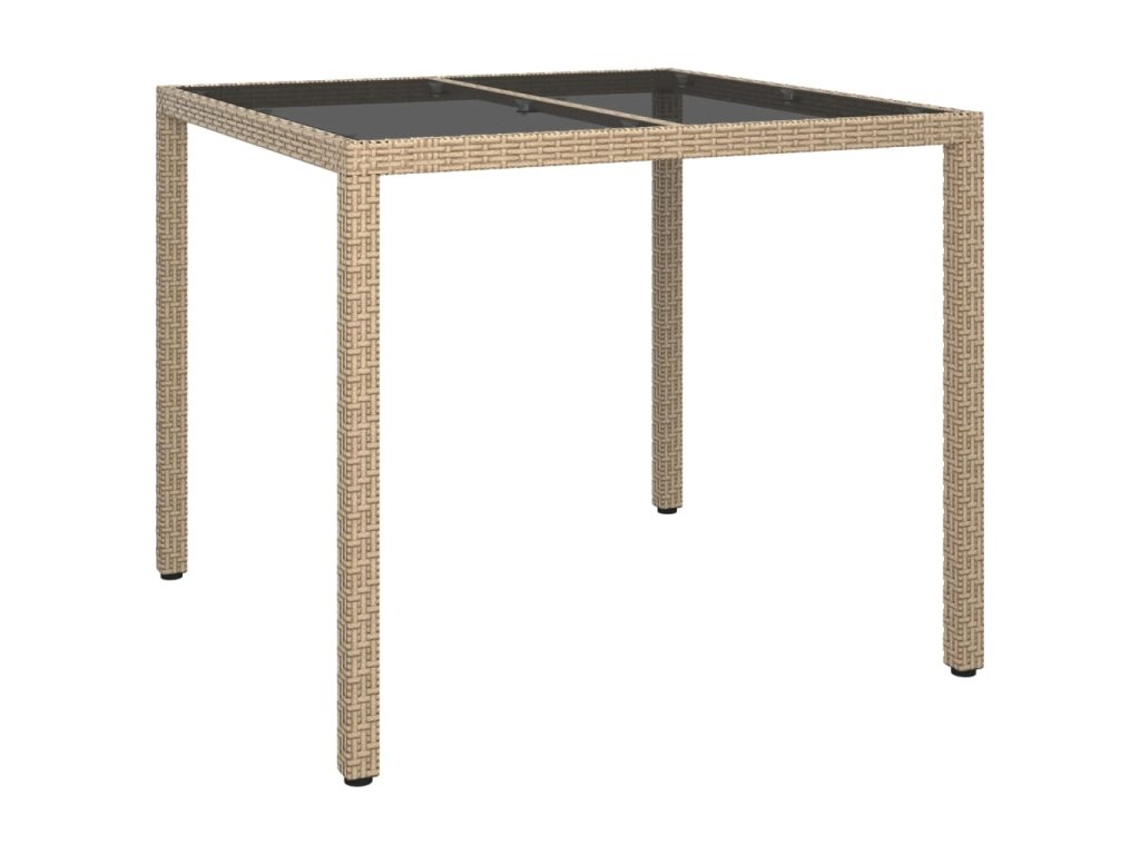 Zahradní stůl 90 x 90 x 75 cm tvrzené sklo a polyratan béžový