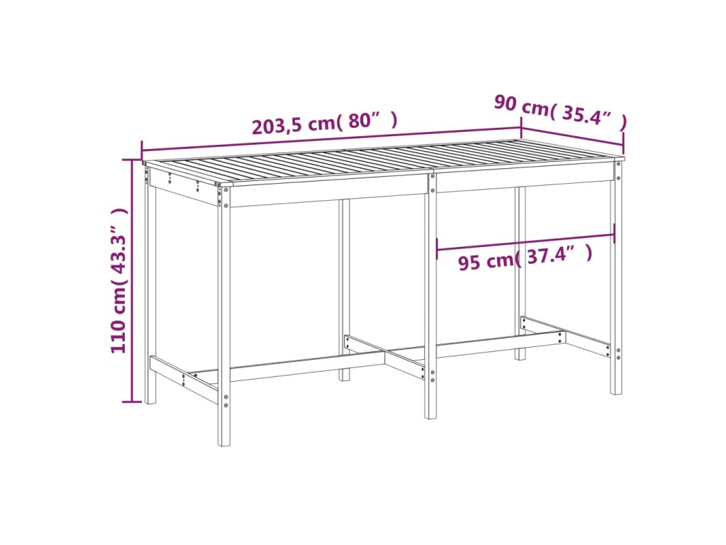 Zahradní stůl bílý 203,5 x 90 x 110 cm masivní borové dřevo