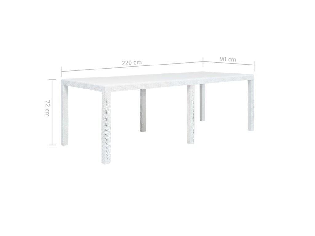 Zahradní stůl bílý 220 x 90 x 72 cm plast ratanový vzhled