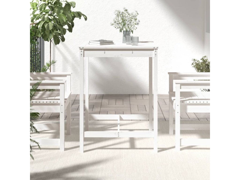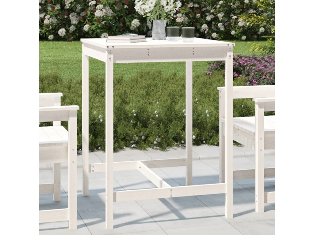 Zahradní stůl bílý 82,5 x 82,5 x 110 cm masivní borové dřevo