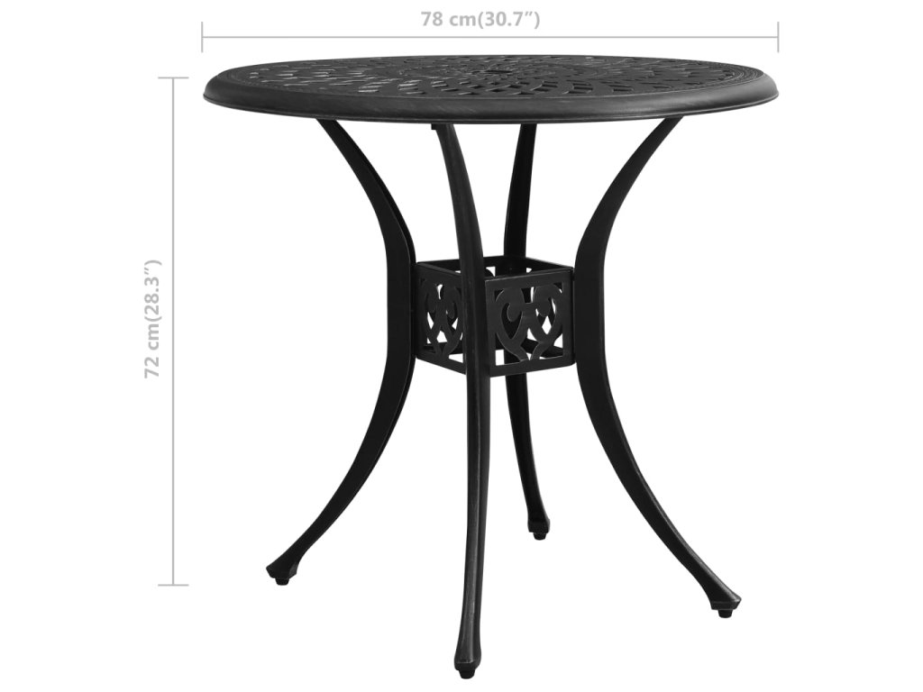 Zahradní stůl černý 78 x 78 x 72 cm litý hliník