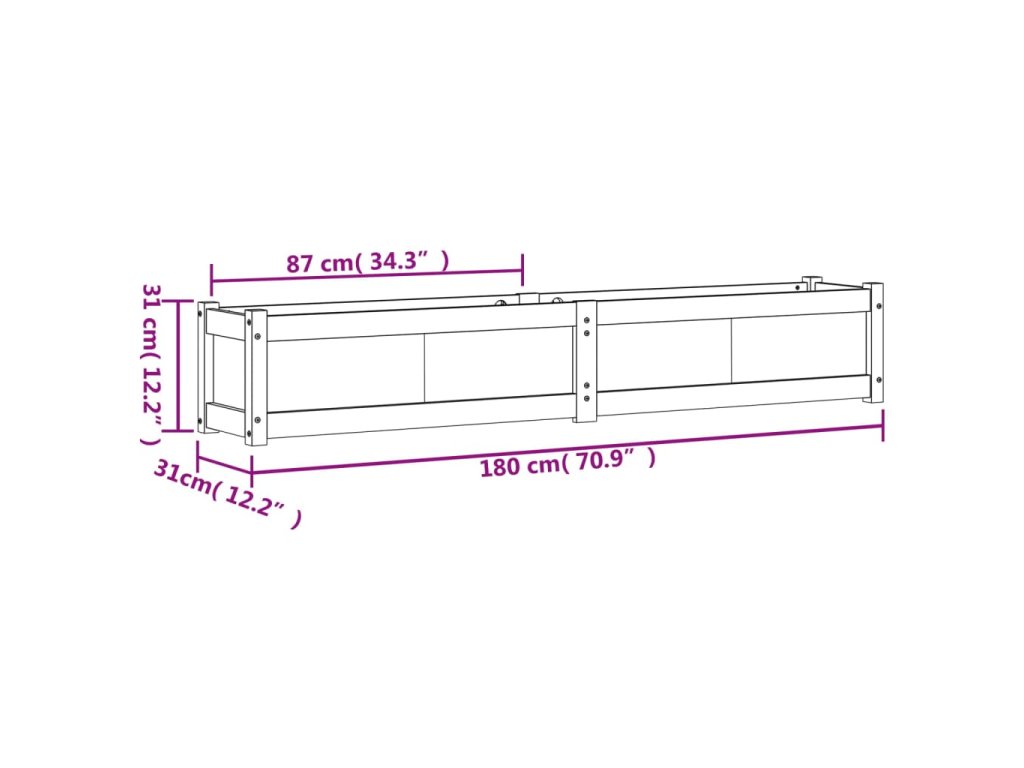 Zahradní truhlík 180 x 31 x 31 cm masivní borové dřevo