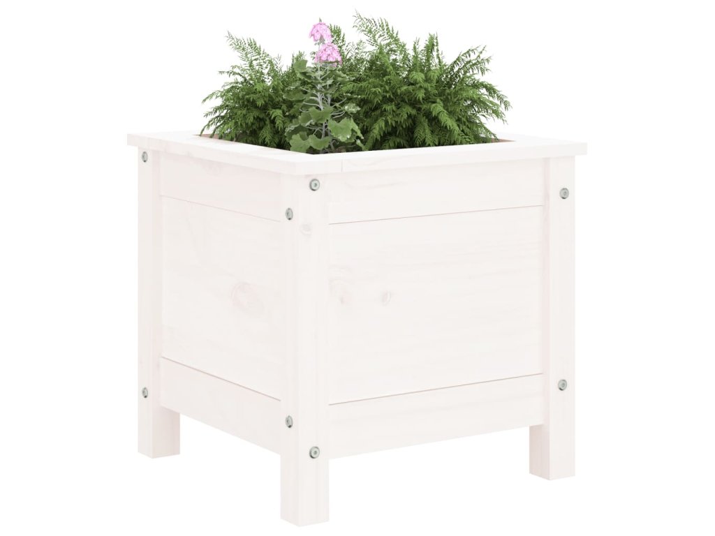 Zahradní truhlík bílý 40 x 40 x 39 cm masivní borové dřevo