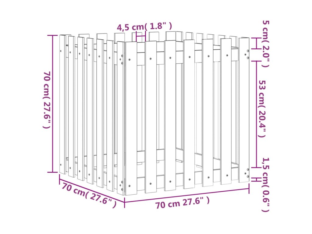 Zahradní truhlík plotový design 70x70x70 cm masivní borovice