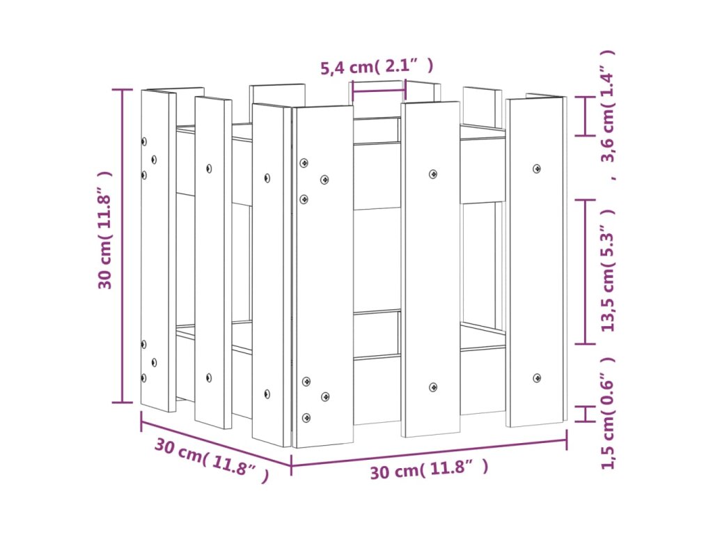 Zahradní truhlík plotový design bílý 30x30x30 cm masiv borovice
