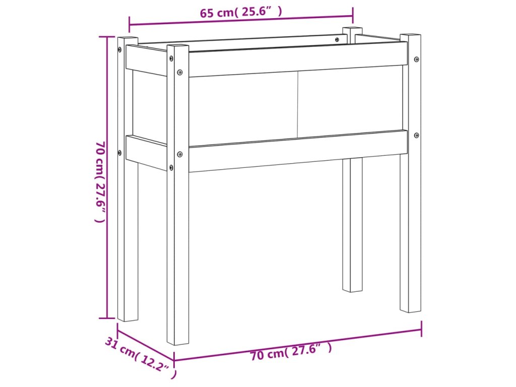 - Rozměry truhlíku: 70 x 31 x 24,5 cm (Š x H x V)