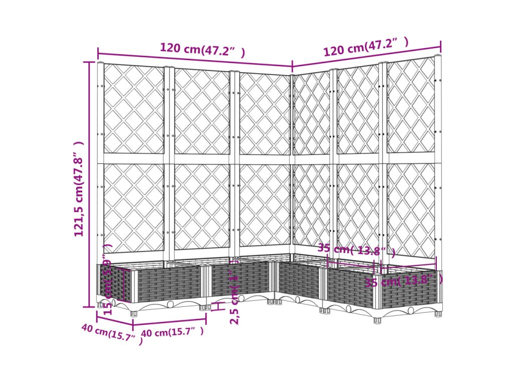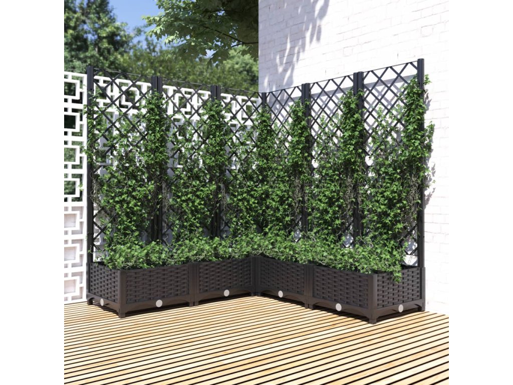 Zahradní truhlík s treláží černý 120 x 120 x 121,5 cm PP