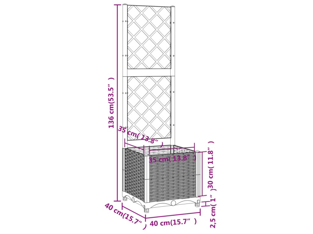 Tento květináč je vyroben z odolného PP, pevného a robustního a vhodný pro venkovní použití. Spodní truhlík pojme velké množství zelených rostlin a květin. Integrovaná treláže nabízí skvělou oporu pro pěstování popínavých rostlin, jako jsou rajčata, hrášek a růže.