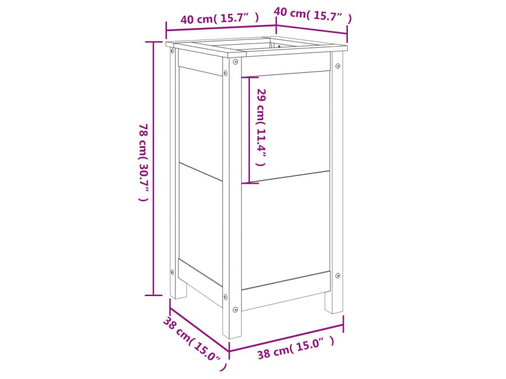 Zahradní truhlík šedý 40 x 40 x 78 cm masivní borové dřevo