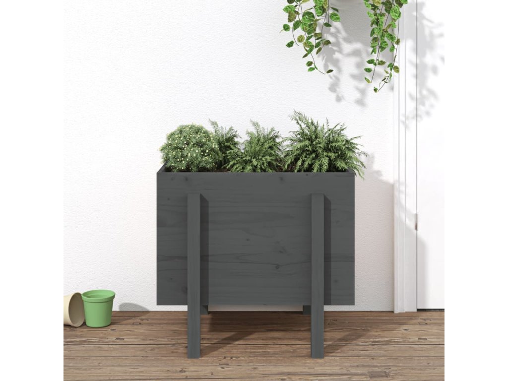 Zahradní truhlík šedý 62 x 50 x 57 cm masivní borové dřevo