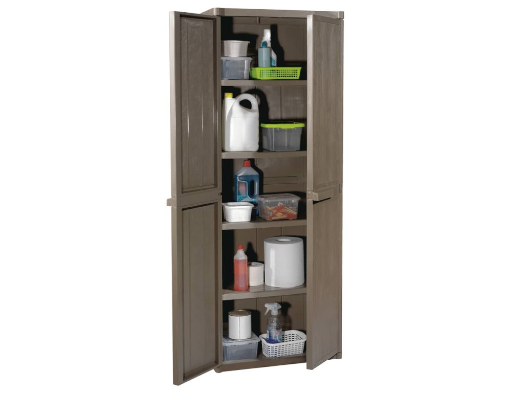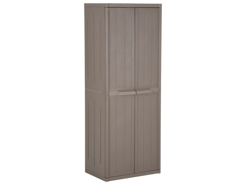 Tento úložný box je vyrobený ze 100% PP (polypropylenu), takže je odolný a snadno se čistí. Jeho 4 police poskytují dostatek prostoru pro přehledné uspořádání a ukládání vašich nezbytností, jako jsou utěrky, prací prostředky, kartáče a další. Všestranná skříň splní například na terase všechny vaše požadavky.