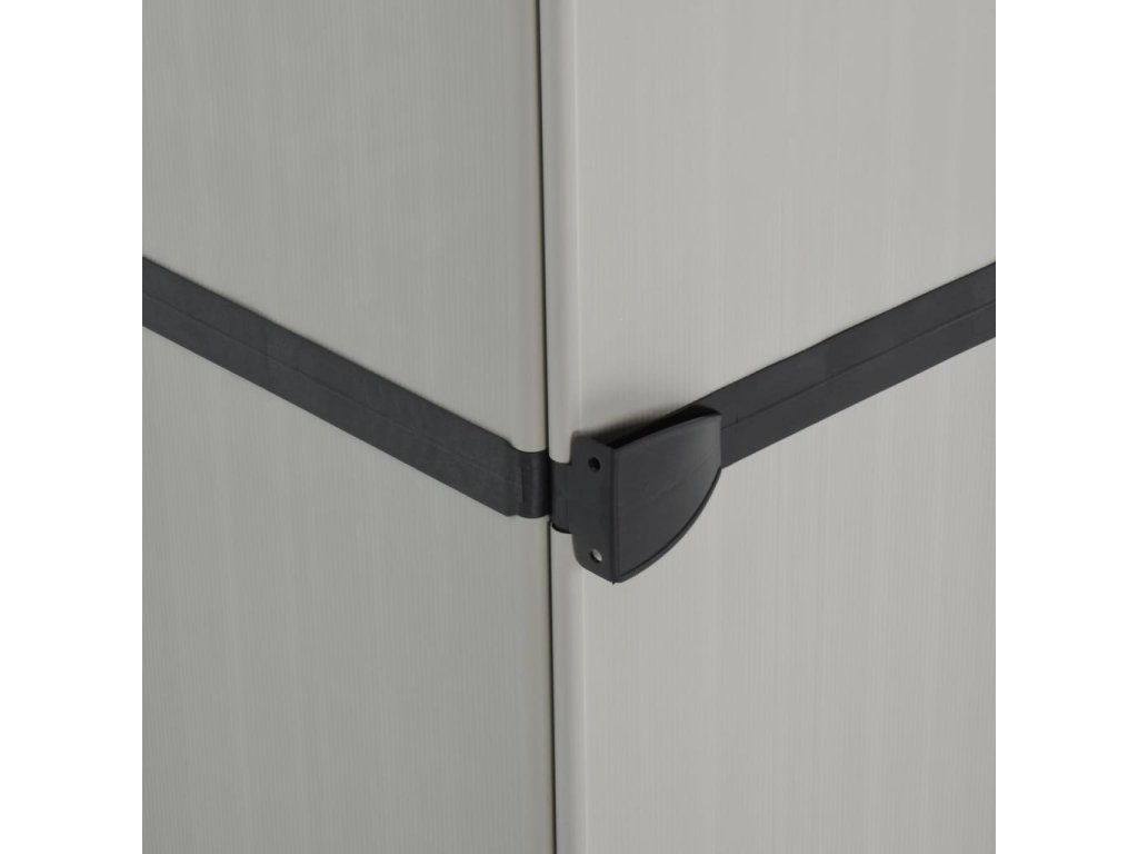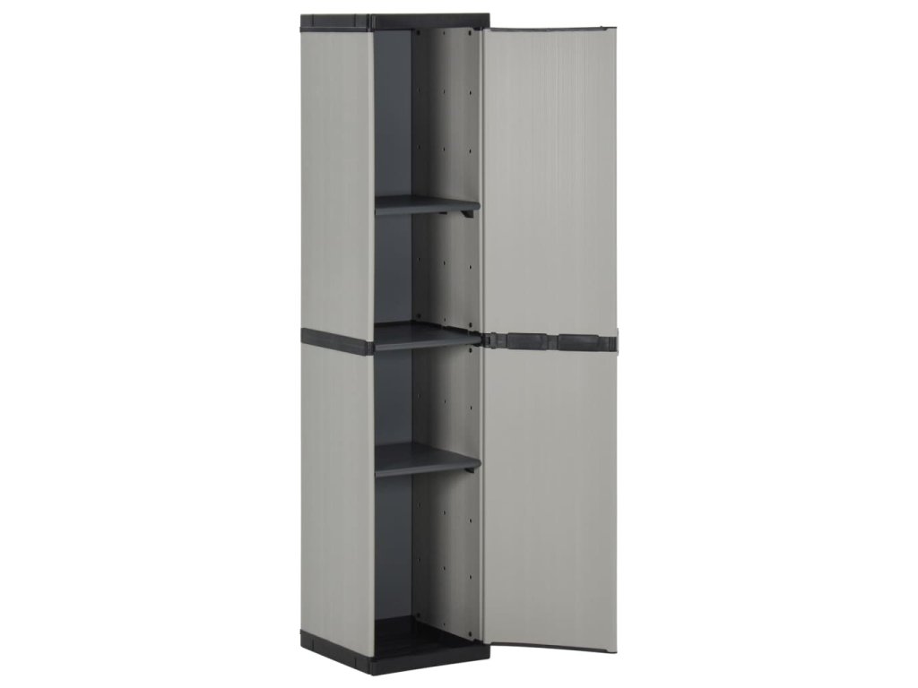 Skříň na terasu je vyrobena z PVC a PP (polypropylenu), takže je robustní, dlouho vydrží a snadno se čistí. Tato skříň na balkon je vybavena 3 policemi, poskytne vám tedy spoustu úložného prostoru pro všechny důležité věci, které chcete mít přehledně uschované a na dosah ruky. Zahradní skříňka má kompaktní design a maximálně využije omezený prostor.