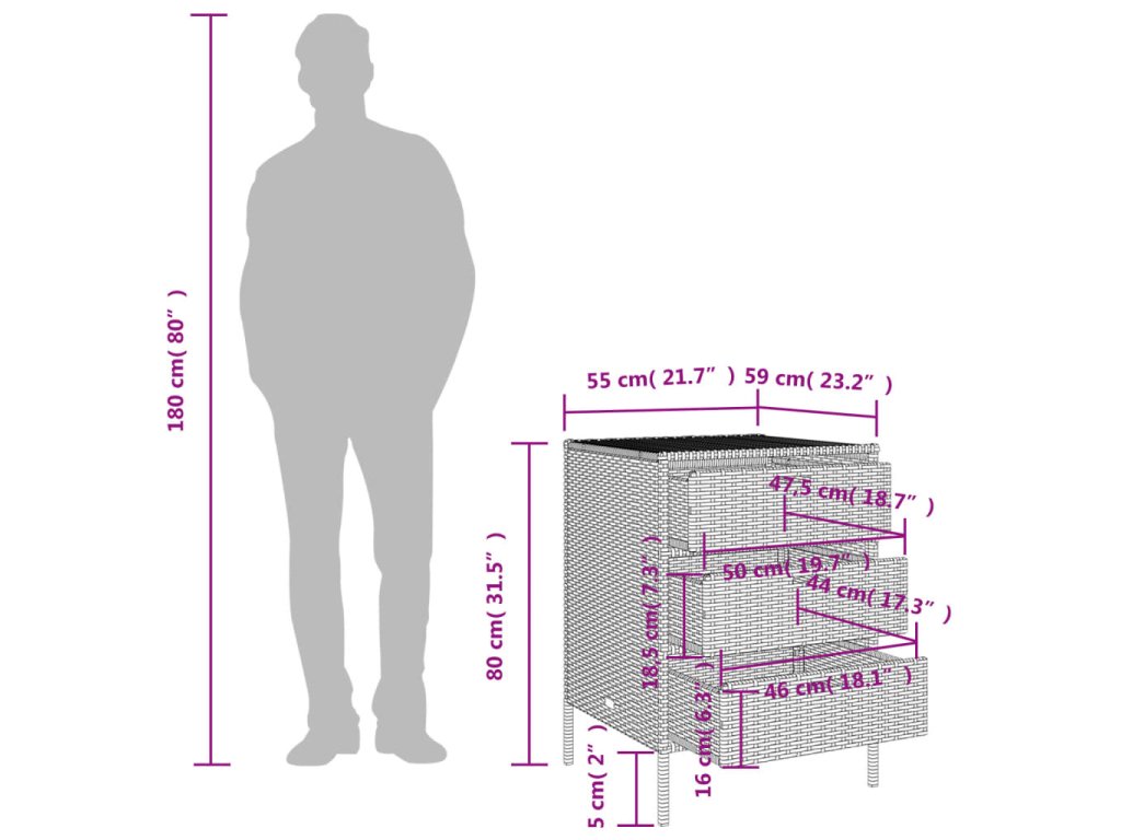 Zahradní úložná skříň šedá 55 x 59 x 80 cm polyratan