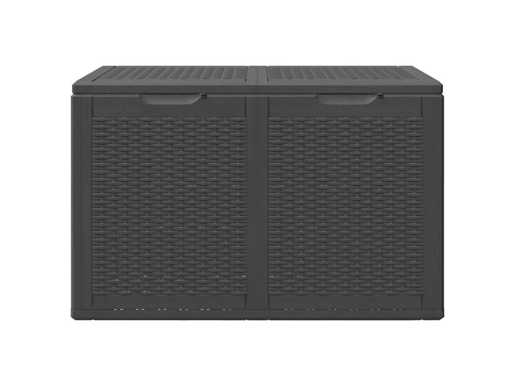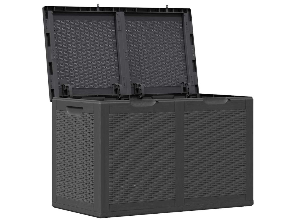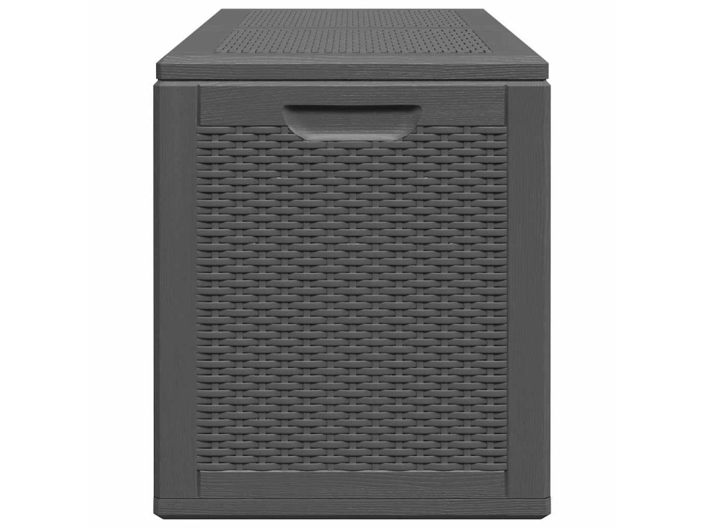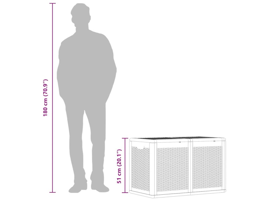 Úložná truhla je vyrobena ze 100% PP materiálu, takže je odolná vůči povětrnostním vlivům, UV záření, je lehká a snadno se přenáší. Zahradní úložný box se vyznačuje decentním, ale nadčasovým designem a dokonale zapadne do vašeho interiéru i exteriéru. Nabízí dostatek úložného prostoru pro podušky, polštáře a další domácí nebo zahradní potřeby, které chcete mít po ruce.
