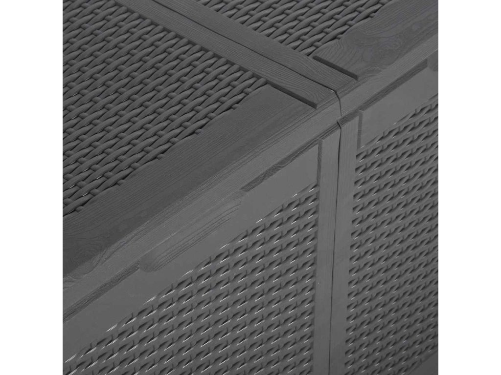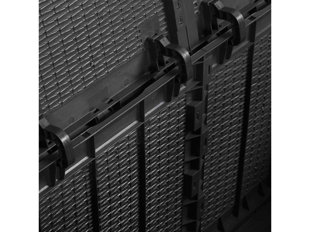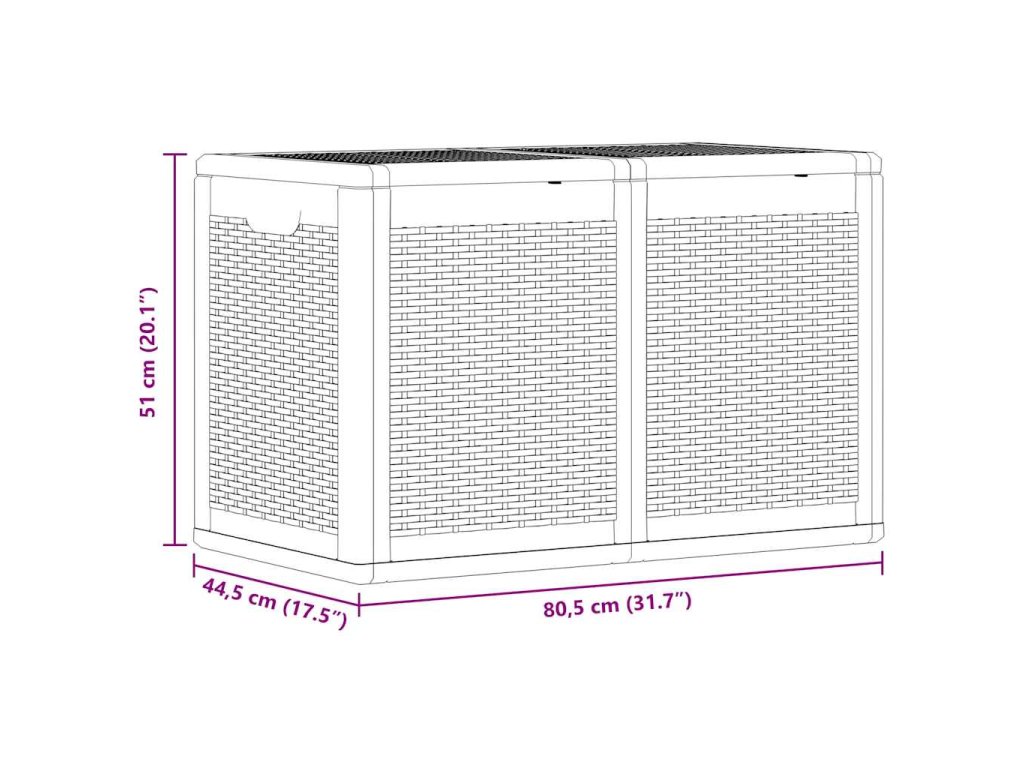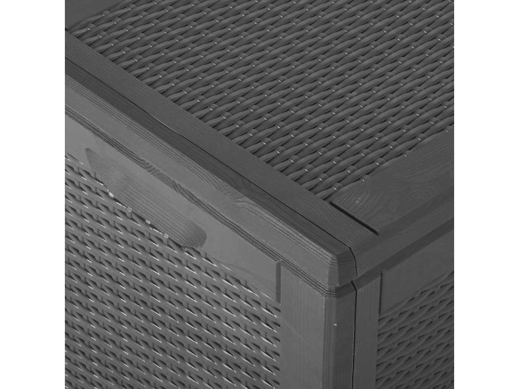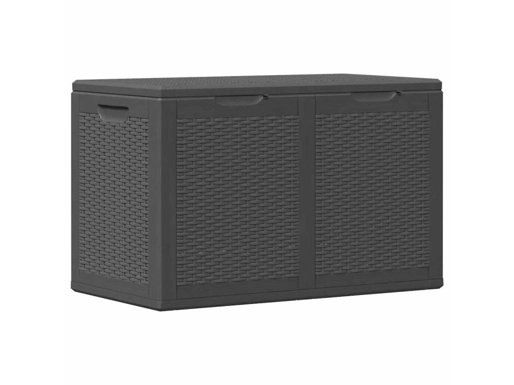 Úložná truhla je vyrobena ze 100% PP materiálu, takže je odolná vůči povětrnostním vlivům, UV záření, je lehká a snadno se přenáší. Zahradní úložný box se vyznačuje decentním, ale nadčasovým designem a dokonale zapadne do vašeho interiéru i exteriéru. Nabízí dostatek úložného prostoru pro podušky, polštáře a další domácí nebo zahradní potřeby, které chcete mít po ruce.