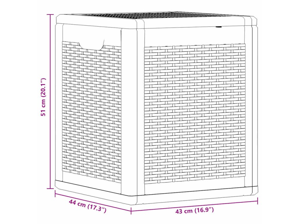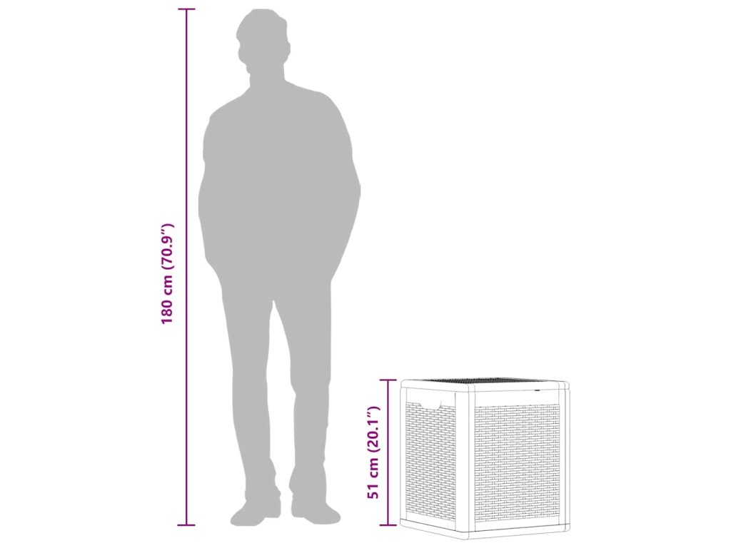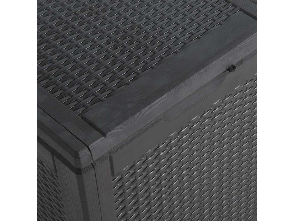 Úložná truhla je vyrobena ze 100% PP materiálu, takže je odolná vůči povětrnostním vlivům, UV záření, je lehká a snadno se přenáší. Zahradní úložný box se vyznačuje decentním, ale nadčasovým designem a dokonale zapadne do vašeho interiéru i exteriéru. Nabízí dostatek úložného prostoru pro podušky, polštáře a další domácí nebo zahradní potřeby, které chcete mít po ruce.