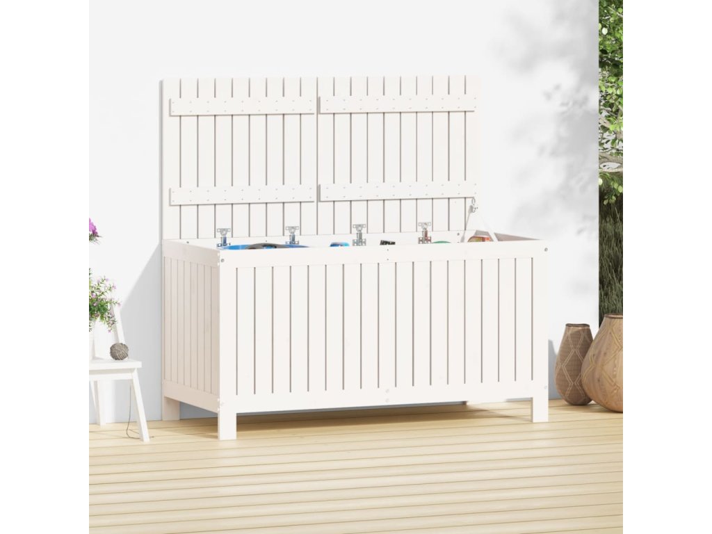 Zahradní úložný box bílý 121 x 55 x 64 cm masivní borové dřevo