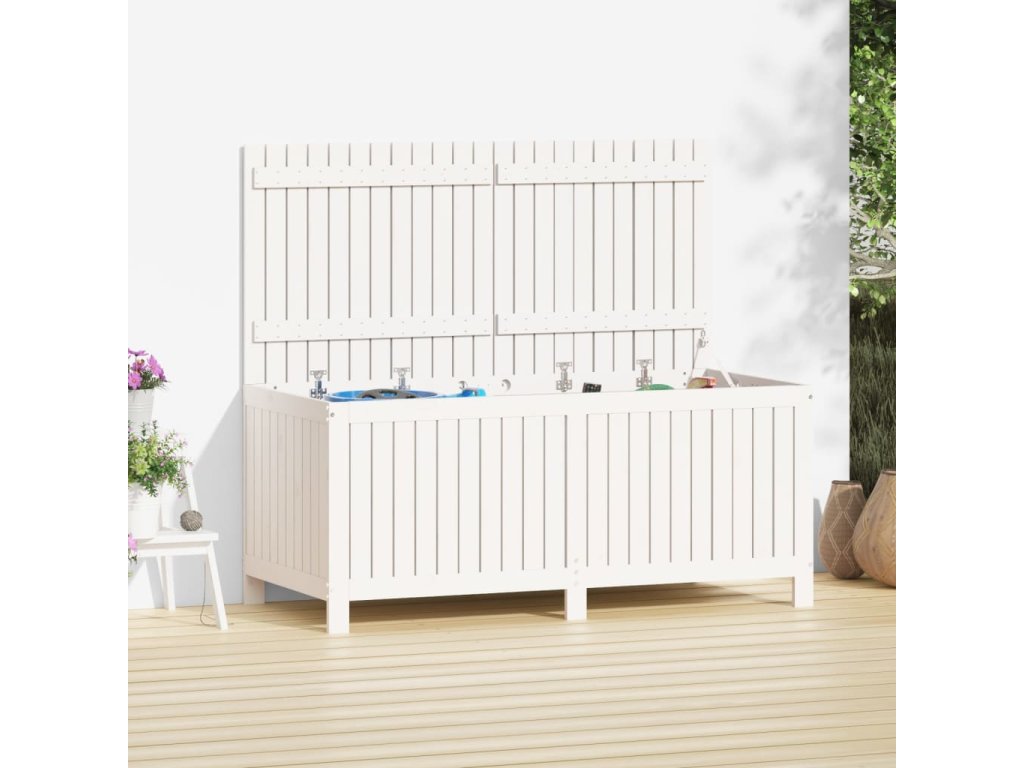 Zahradní úložný box bílý 147 x 68 x 64 cm masivní borové dřevo