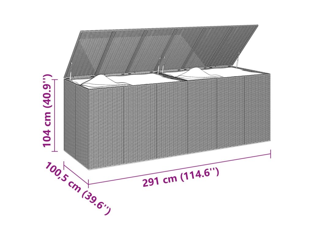 Zahradní úložný box PE ratan 291 x 100,5 x 104 cm šedý