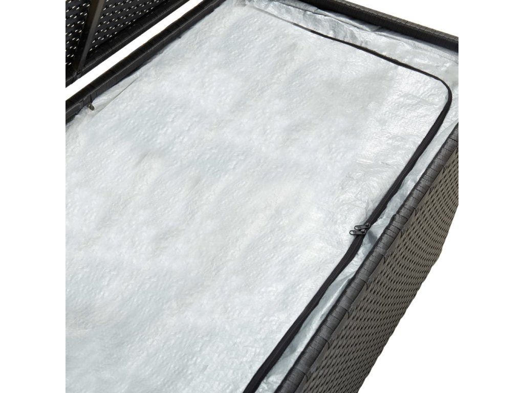 Tento odolný polyratanový úložný box je praktickým i dekorativním doplňkem do vaší domácnosti. Skvěle se hodí dovnitř i ven. Úložná truhla má vnitřní výstelku z PE se zapínáním na zip.