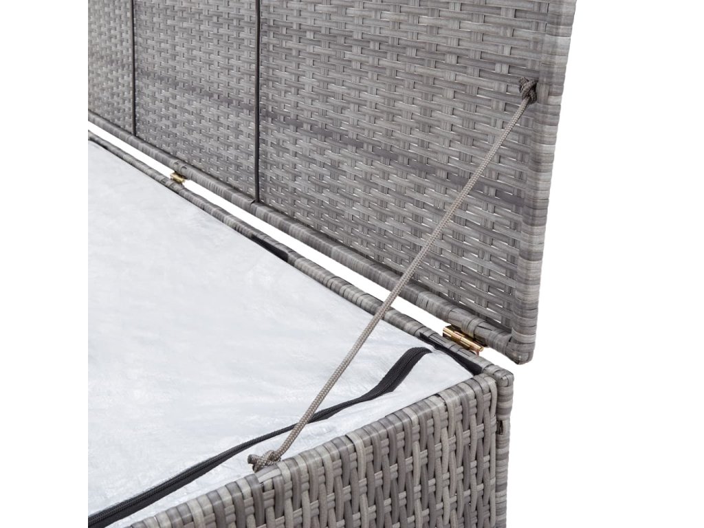 Tato úložná truhla s podšívkou je ideální řešení pro ukládání polstrů na zahradní nábytek a všech ostatních předmětů. Klimaticky odolný PE ratan, ze kterého je úložný box vyrobený, se snadno čistí, má dlouhou životnost a je vhodný pro každodenní venkovní použití.