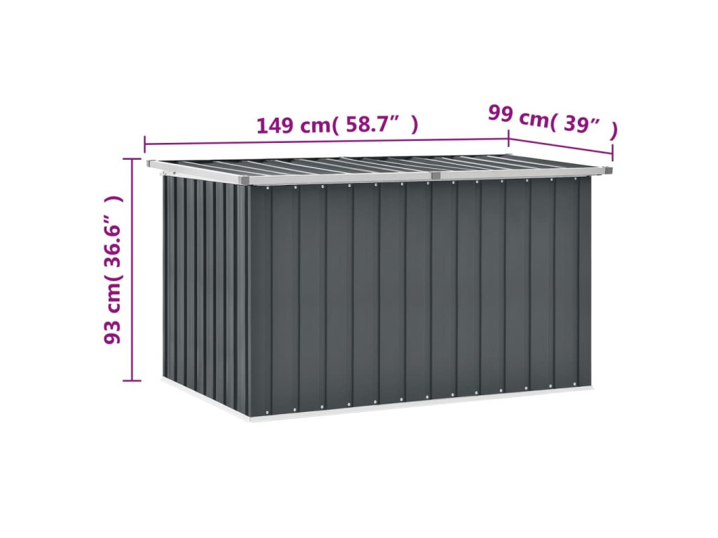 - Odolný a odolný materiál: Úložný box je vyroben z robustní pozinkované oceli vhodné pro vnitřní i venkovní použití.