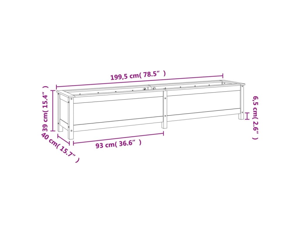 Zahradní vyvýšený záhon 199,5 x 40 x 39 cm masivní borové dřevo