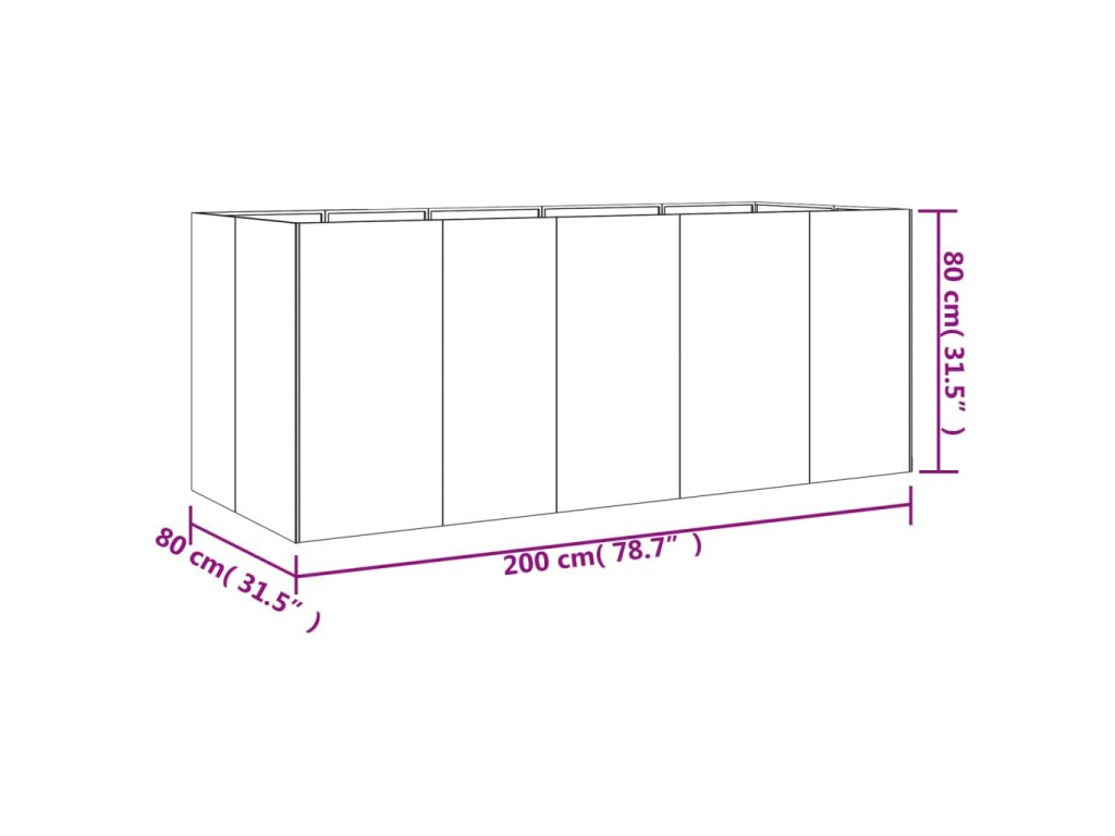 Zahradní vyvýšený záhon 200 x 80 x 80 cm cortenová ocel
