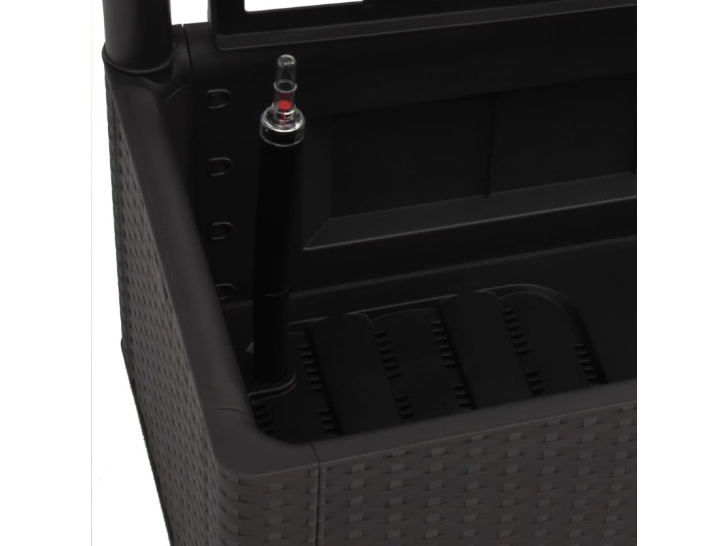 Zabudovaná treláž nabízí vynikající podporu pro popínavé rostliny, jako jsou bylinky, rajčata, fazole atd. Je vyrobená z robustního UV- a mrazuvzdorného plastu a je vhodný pro vnitřní i venkovní použití. Design velmi realisticky připomíná pravou ratanovou strukturu. Materiál lze mýt vodou a snadno se čistí. Truhlík má 90l nádrž na vodu, ze které může automaticky zavlažovat rostliny. Zároveň je vybavený otvory pro přepad vody, které zabraňují přetečení. Indikátor úrovně vody je součástí balení.