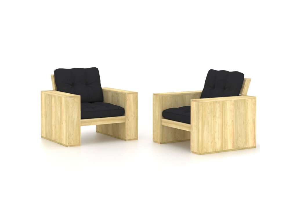 Zahradní židle 2 ks + černé podušky impregnovaná borovice