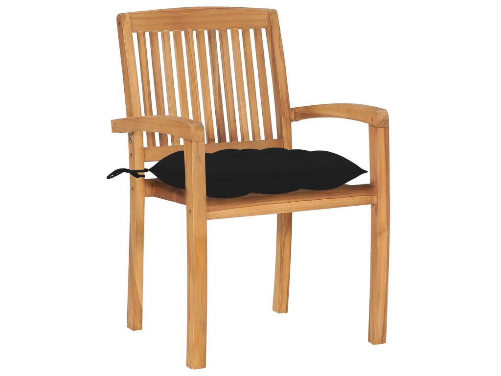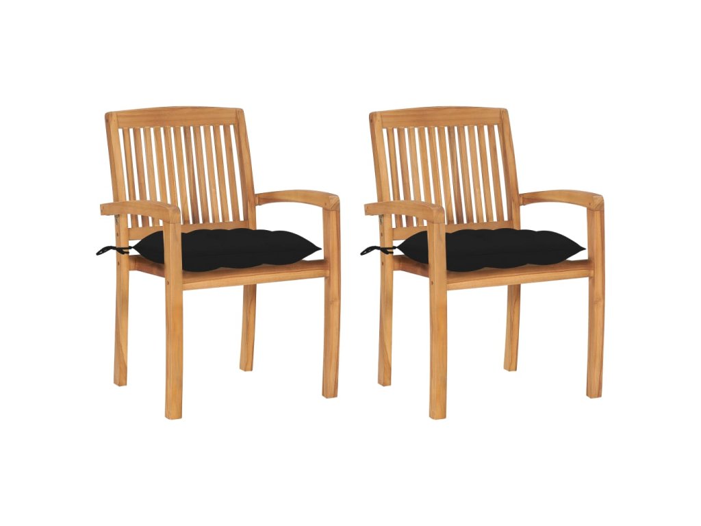 Zahradní židle 2 ks černé podušky masivní teak
