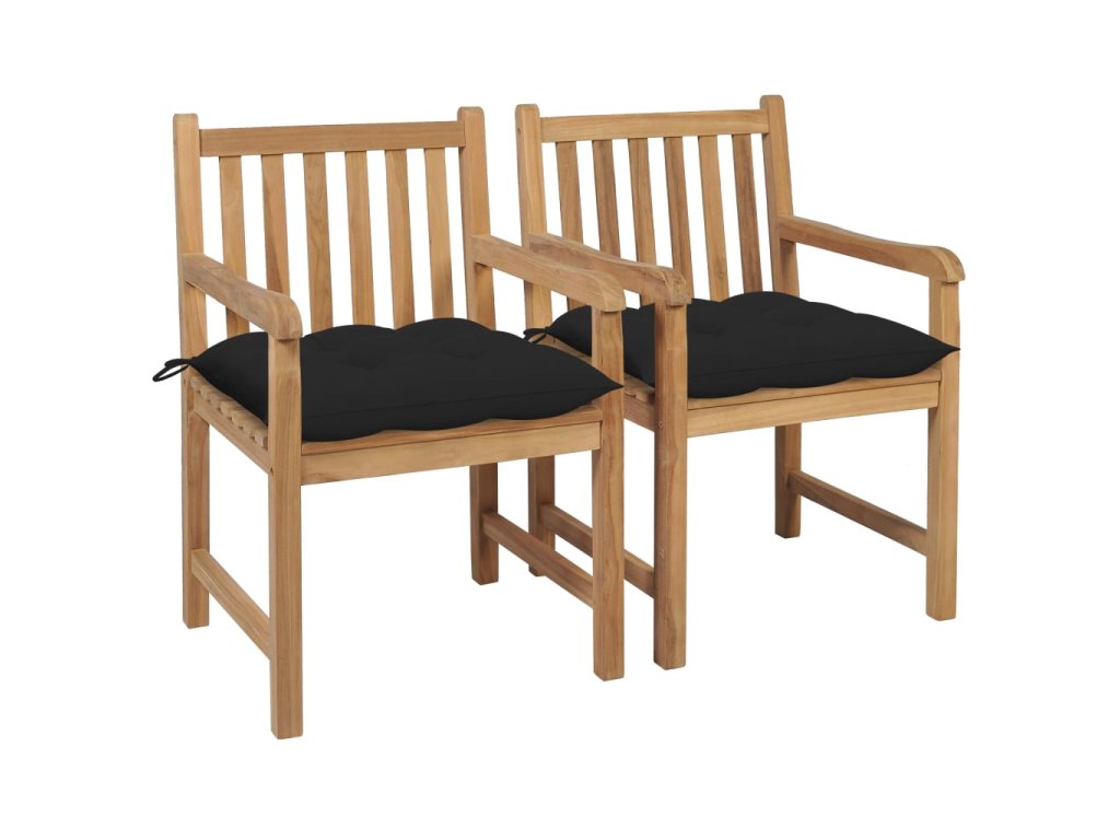 Zahradní židle 2 ks černé podušky masivní teak