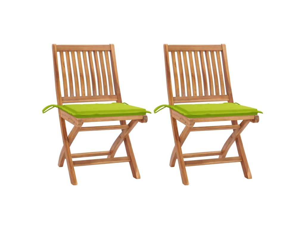 Zahradní židle 2 ks jasně zelené podušky masivní teakové dřevo