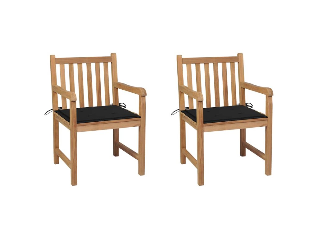 Zahradní židle 2 ks s černými poduškami masivní teak