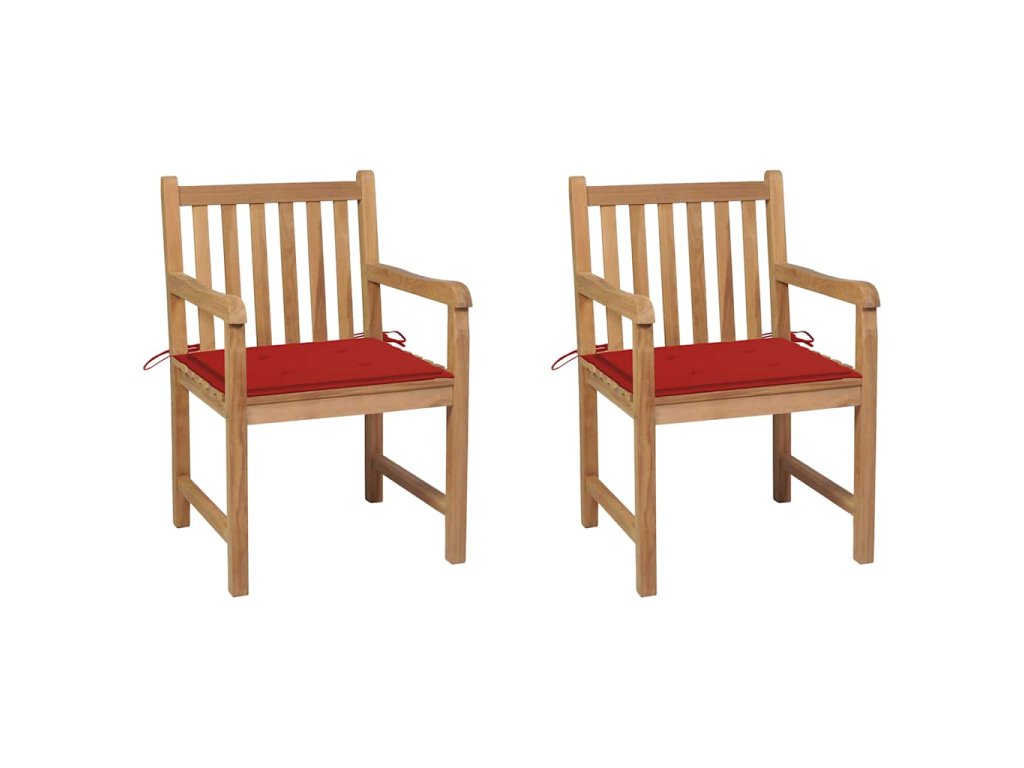 Zahradní židle 2 ks s červenými poduškami masivní teak