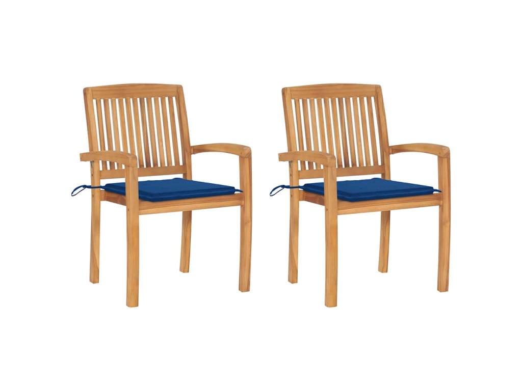 Zahradní židle 2 ks s královsky modrými poduškami masivní teak
