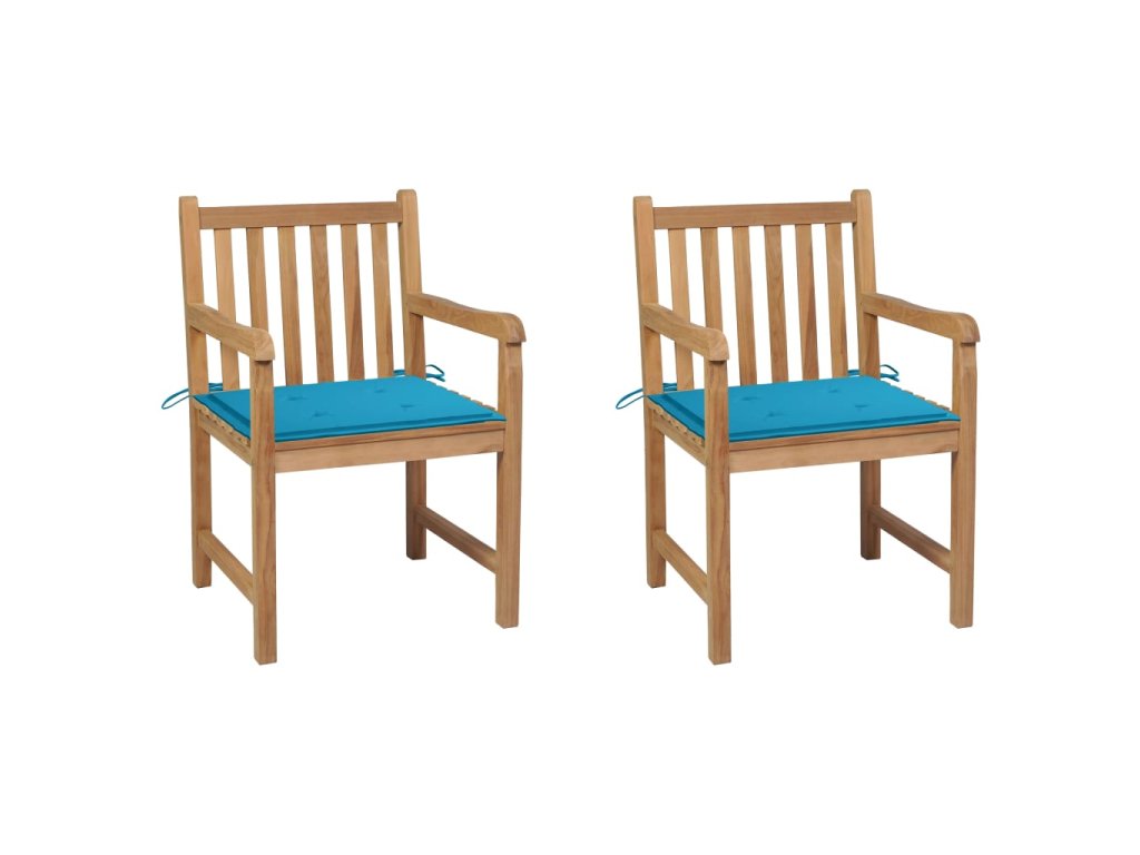 Zahradní židle 2 ks s modrými poduškami masivní teak