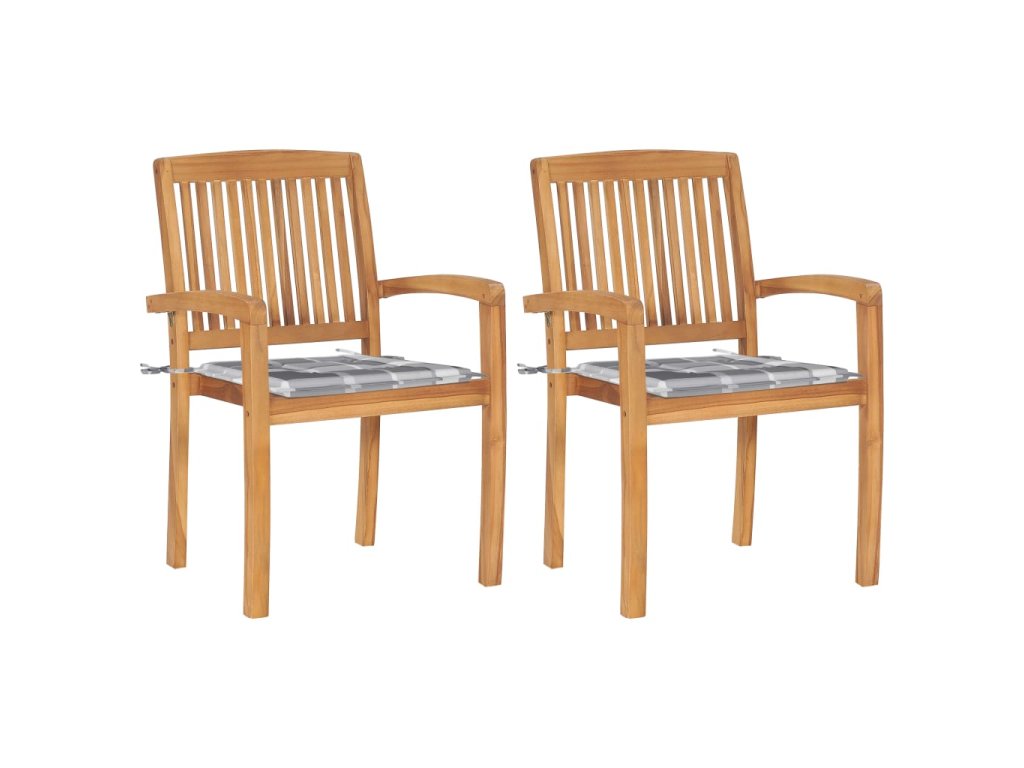 Zahradní židle 2 ks šedé kárované podušky masivní teakové dřevo