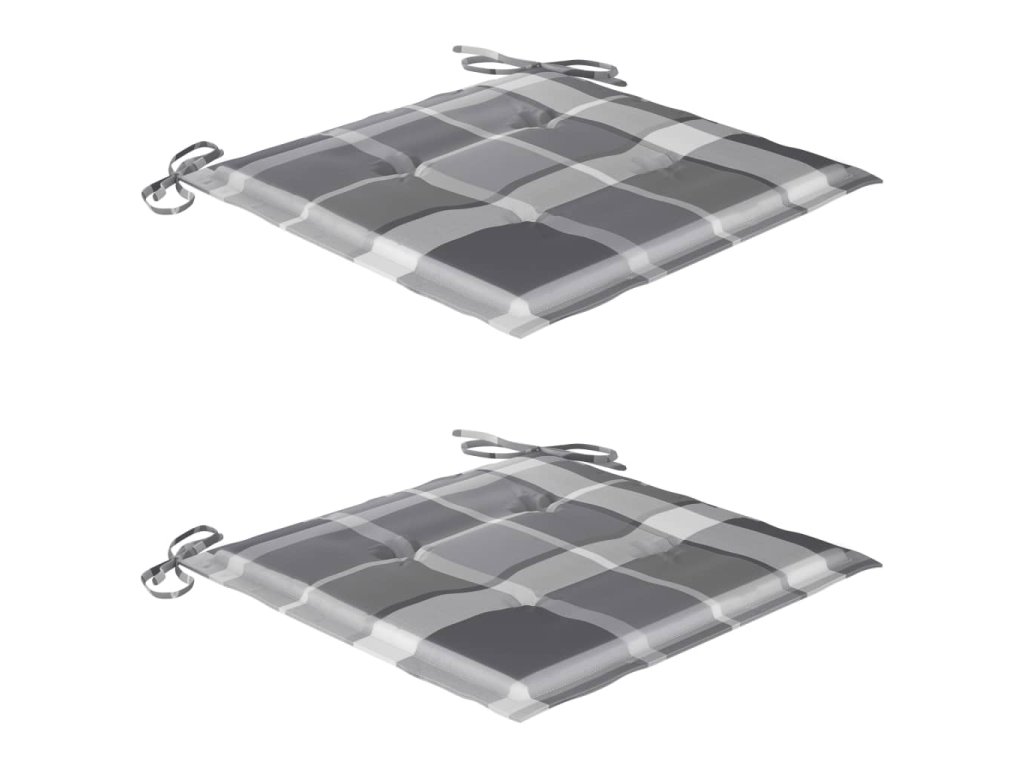 Zahradní židle 2 ks šedé kárované podušky masivní teakové dřevo