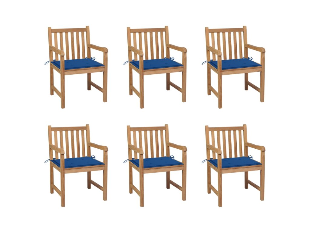 Zahradní židle 6 ks královsky modré podušky masivní teak